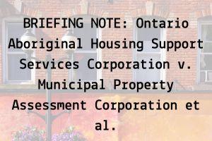 Briefing Note: Ontario Aboriginal Housing Support Services Corporation v. Municipal Property Assessment Corporation et al.